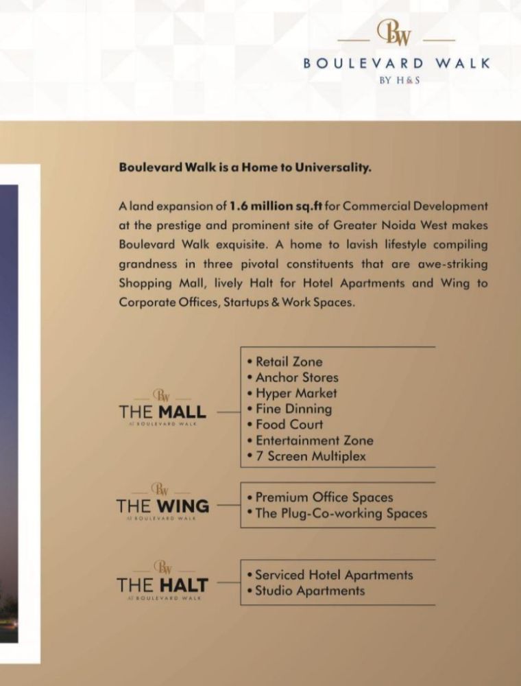 Boulevard Walk, Greater Noida – Retail & Commercial Spaces By H&S group | Only 100 Units available